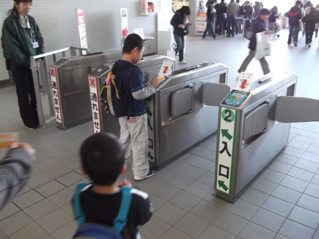 普段は切符での改札しか経験していないので、タッチアンドゴーの改札に慣れてない我が家。