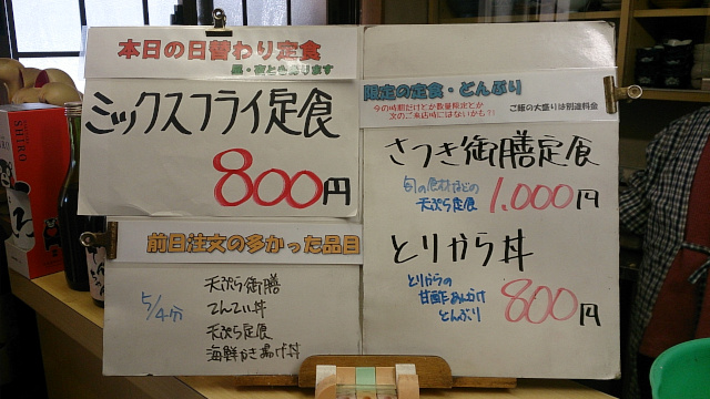 平成26年5月7日のお知らせ 日替わり定食はミックスフライ定食 » カウンターメニュー