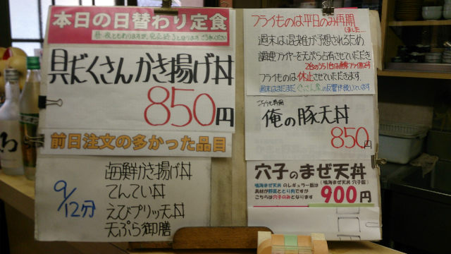 平成29年9月13日のお知らせ 日替わり定食は具だくさんかき揚げ丼 » 日替わり定食は具だくさんかき揚げ丼